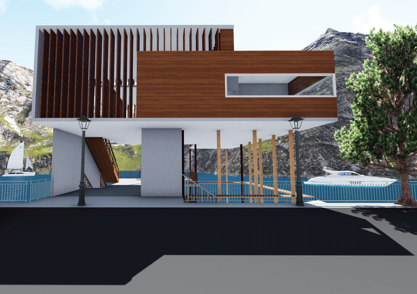 The Lake View is an art gallery. This three story building has an access thought the principal street and another one thought the sidewalk. It has three different areas of expositions, interior and exterior. The building is next to a natural pool with a zone to rest and take the sun. It has doble height and vertical louvers to control the sun exposition in the upper levels. The project was design in 2012 under the supervision of Professor Josue Rivera.